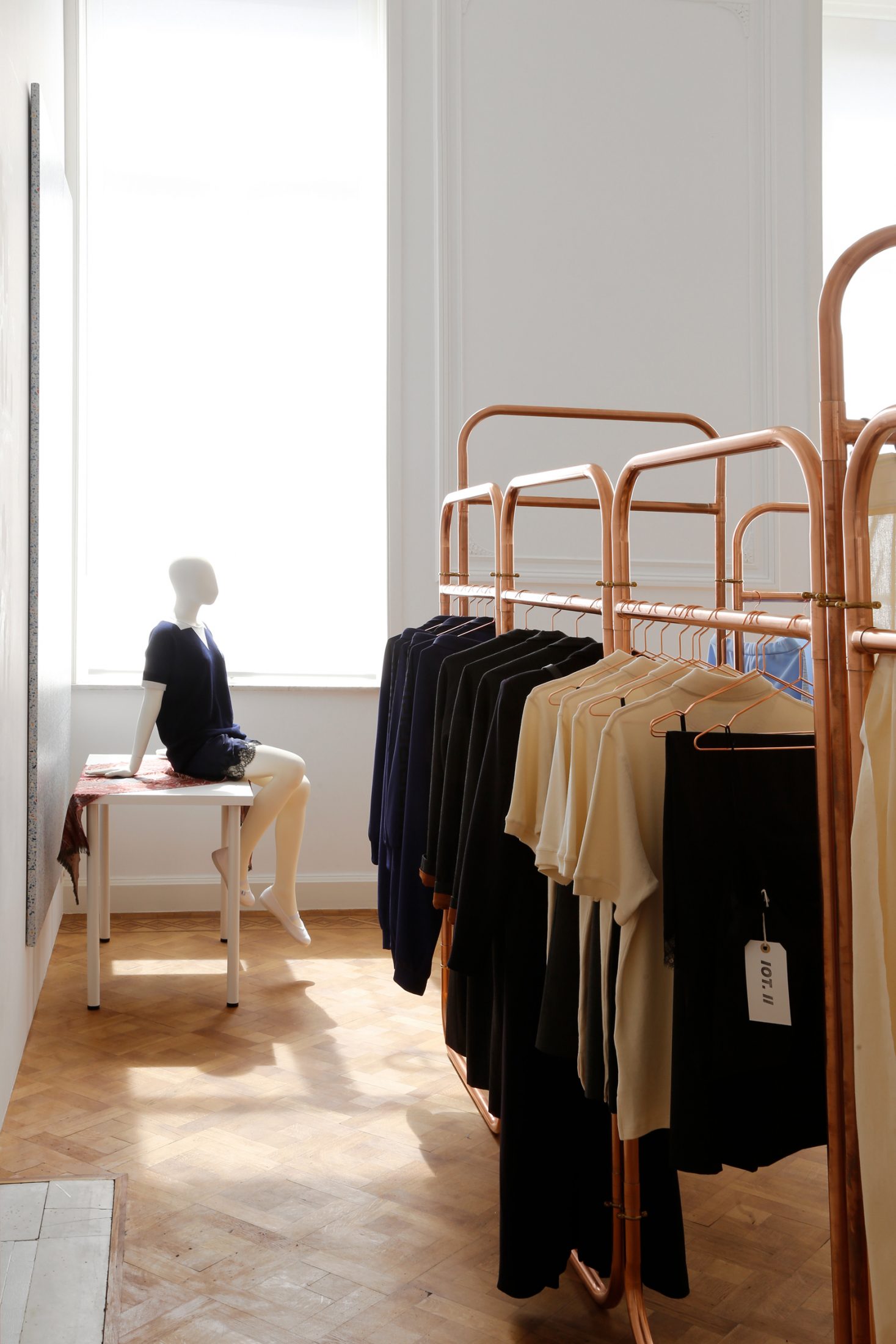 Atelier E.B. is the label under which the designer Beca Lipscombe and the artist Lucy McKenzie sign their collaborative projects. The group was formed in 2007 by Lipscombe and the illustrator Bernie Reid, who are based in Edinburgh, and McKenzie, who is originally from Glasgow and lives in Brussels. Since 2011 the pair have operated as a fashion label, and this June at Galerie Micheline Szwajcer they present their third collection, The Inventors of Tradition II, for sale from a custom-built boutique installation.